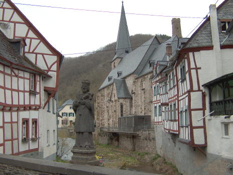 Hl. Nepomuk auf der Brücke mit der katholischen Pfarrkirche Kreuzerhöhung