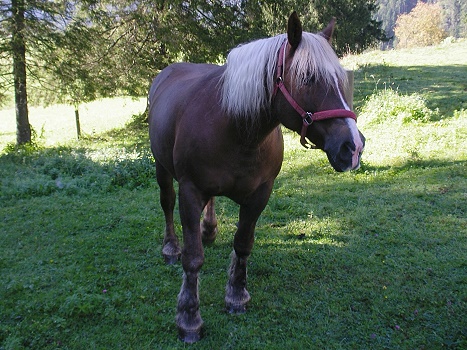 ein Schwarzwälderpferd am Wegrand